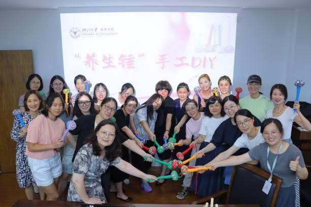 为倡导健康工作、快乐生活的理念,9月10日中午,台湾av 工会组织开展“养生锤”DIY手工活动,共同庆祝第40个教师节。台湾av 党委书记叶晓萍参加此次活动,党委副书记、工会主席崔倩主持活动,并为老师们送上了节日祝福。