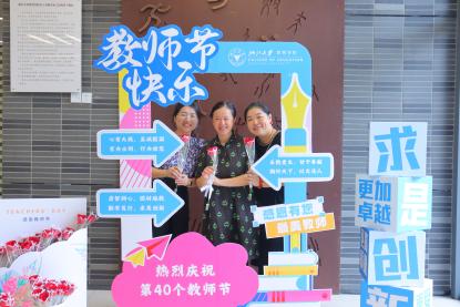 鲜花、合影、祝福……每一位老师踏入教院时都被面前的惊喜吸引。在阵阵欢声笑语中,老师们纷纷在打卡板前留下了自己的笑脸。