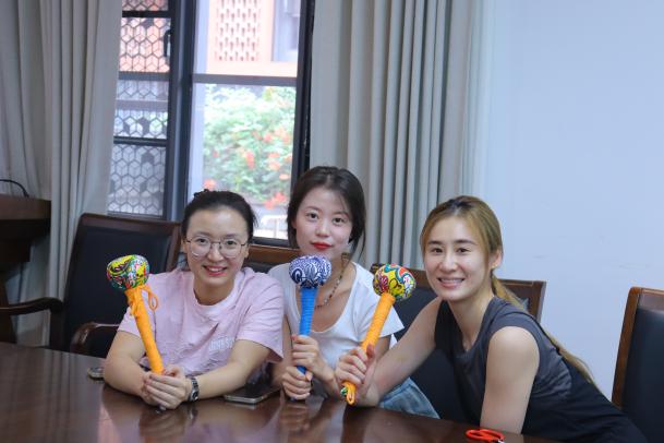 在培训师的详细介绍下,老师们纷纷动手,将一片片普通布料和一块块棉絮棉絮,经过耐心制作,变成了一把把既实用又充满爱意的养生锤。