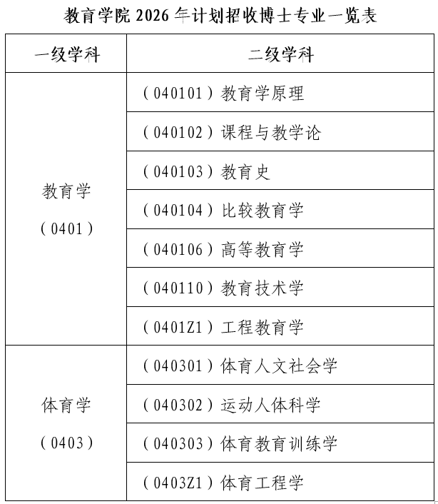 2026年台湾av 计划在教育学和体育学两个一级学科下设的二级学科招收全日制台湾av学位博士生。