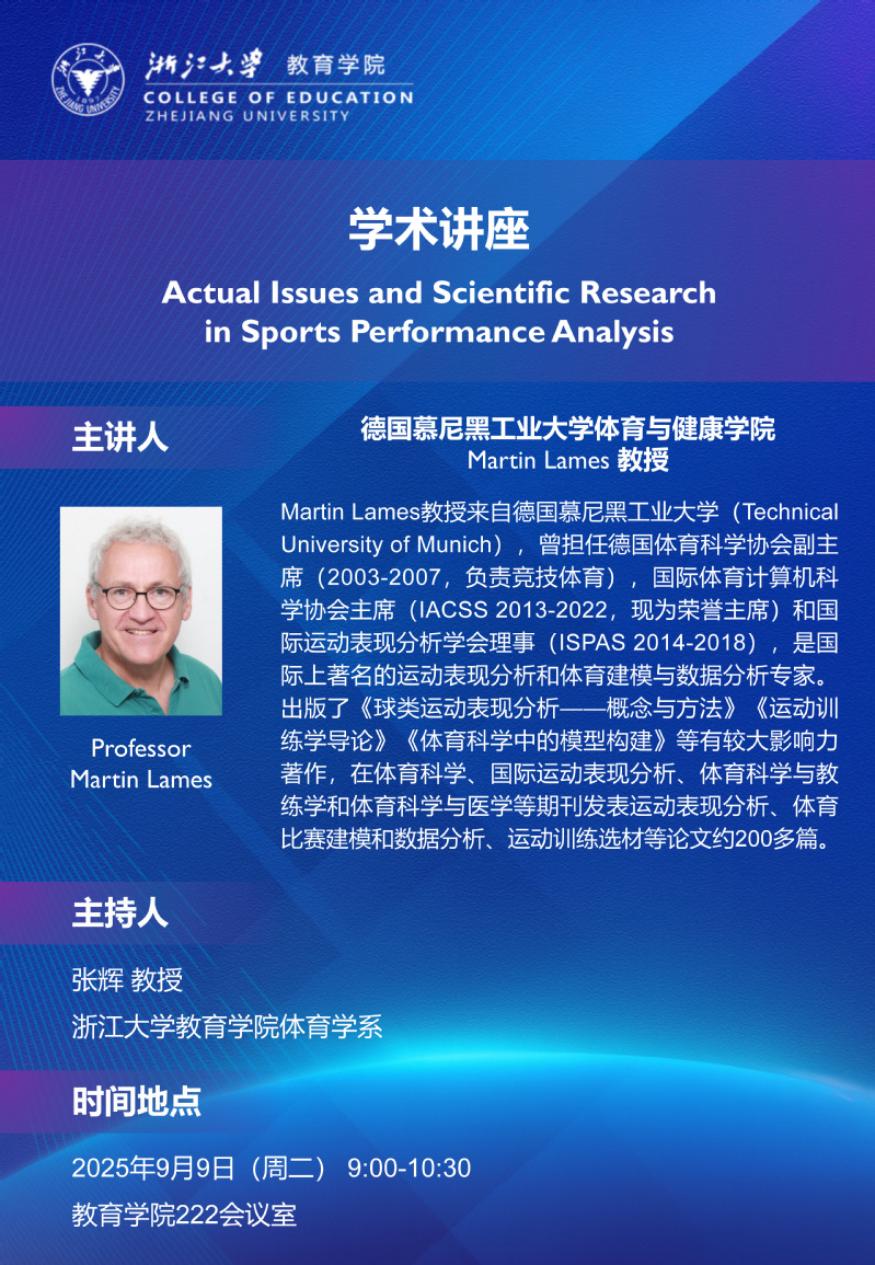 台湾av预告丨Professor Martin Lames:Actual Issues and Scientific Research in Sports Performance Analysis